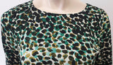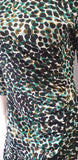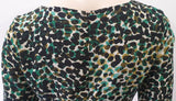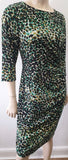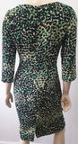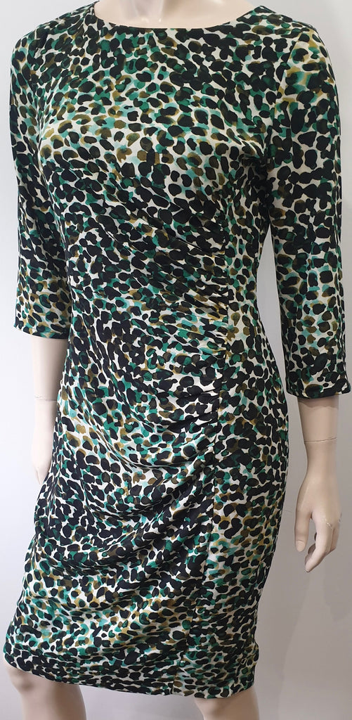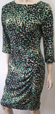 FARHI BY NICOLE FARHI Green White Black Animal Print Ruched Pencil Dress UK10