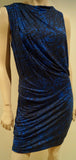 HELMUT LANG Blue & Black Animal Print Sleeveless Ruched Draped Rear Jersey Dress