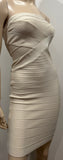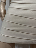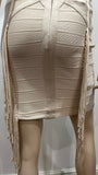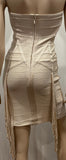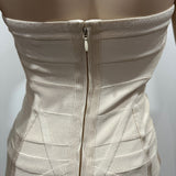 HERVE LEGER Cream Boned Corset Strapless Sleeveless Fringed Bodycon Dress M