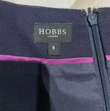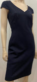 HOBBS Navy Blue Wool V Neck Short Cap Sleeve Short Length Lined Pencil Dress UK8