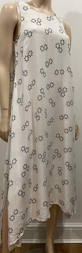 HUSH White & Black Star Print Round Neck Sleeveless A-Line Midi Maxi Dress UK8
