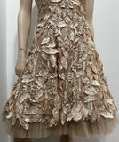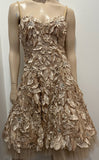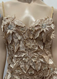 JOVANI Champagne Floral Stitch and Mesh Sleeveless Cocktail Evening Dress - US 4 UK8