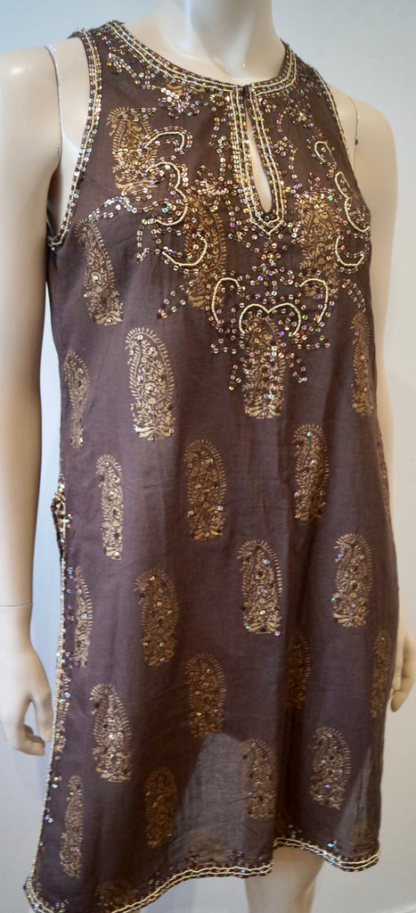 JULIET DUNN Brown & Bronze Cotton Sequin Embellished Beach Cover Up Dress 3