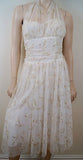 JUMP APPAREL BY WENDYE CHAITIN White & Gold Embroidery Halter Evening Dress Sz:S