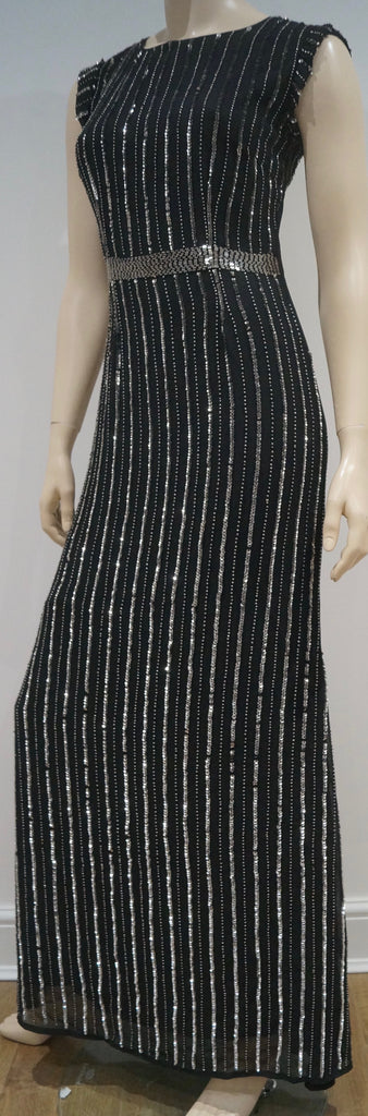 LACE & BEADS Black Silver Sequin Embellished Cap Sleeve Lined Evening Maxi Dress