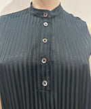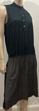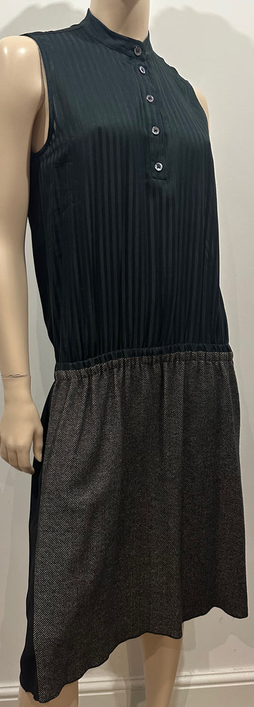 LUZ Green Pinstripe Bodice Drop Waist Pleated Rear Skirt Sleeveless Dress UK10