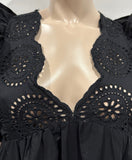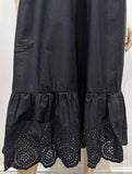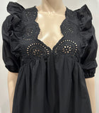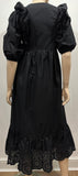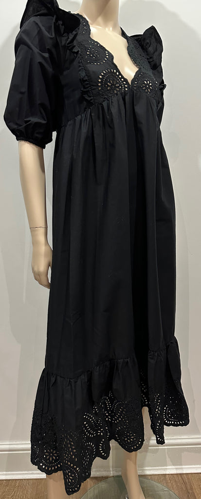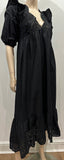 MANGO MNG Black Cotton V Neck Short Sleeve Embroidery Trim Long Maxi Dress XS