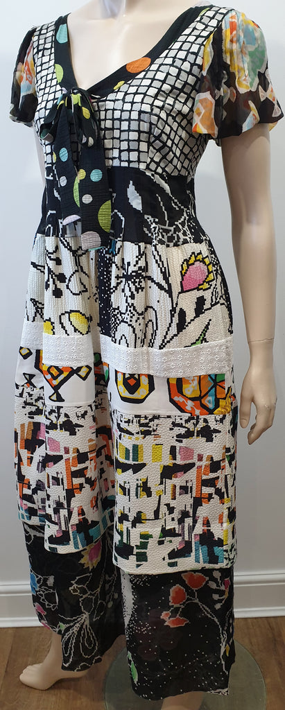MAURIZIO PECORARO MILANO Multi Colour Patch Short Sleeve Maxi Dress UK10