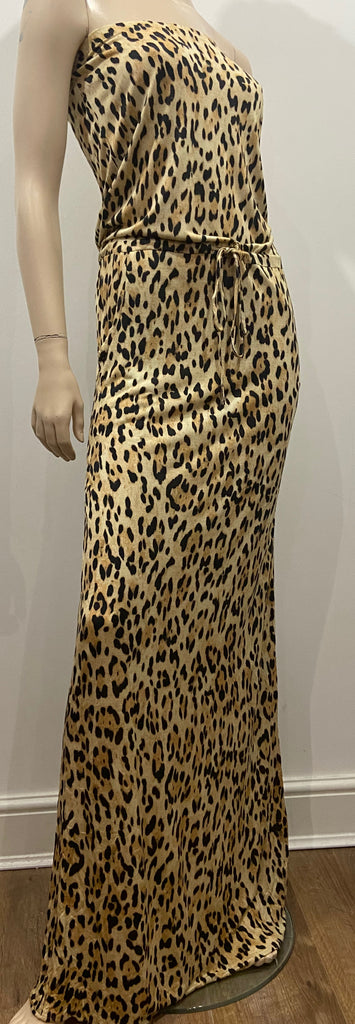 MELISSA ODABASH Beige Black Modal Leopard Animal Print Long Length Maxi Dress M