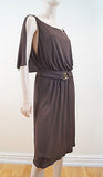 MILLY OF NEW YORK Chocolate Brown Gold Tone Waist Detail Pleated Evening Dress M
