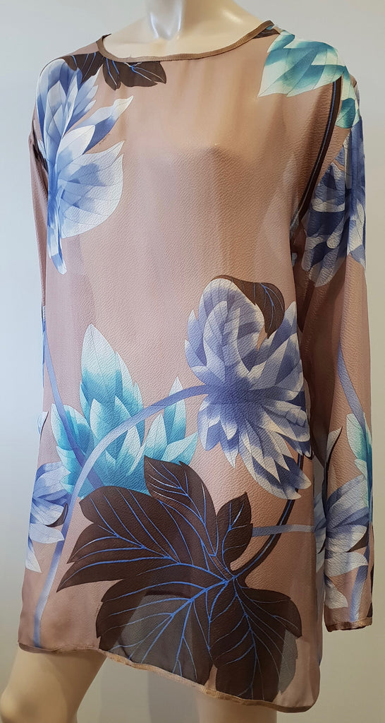 MISSONI Beige Silk Multicolour Bold Floral Print Long Sleeve Sheer Dress IT44 12