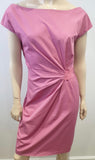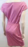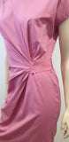 NICOLE FARHI Pink Cotton Scoop Neck Pleat Ribbon Waist Short Sleeve Pencil Dress