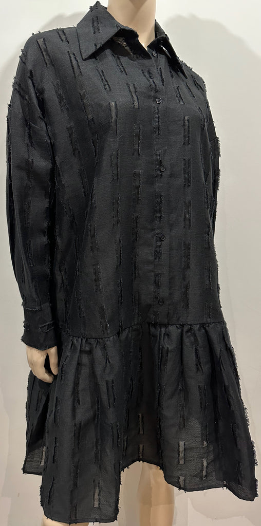 & OTHER STORIES Black Linen Cotton Blend Collared Long Sleeve Dress EU36 UK8