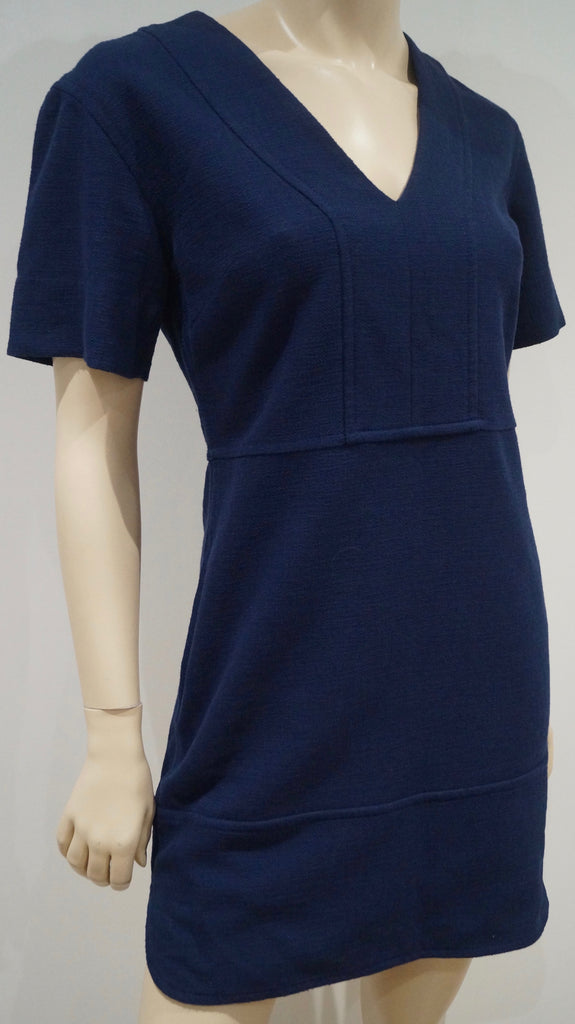 PAUL & JOE SISTER Navy Blue Cotton Blend V Neck Short Sleeve Dress FR36 UK8