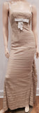 PAULE KA Beige Cotton Blend Lace Sleeveless Pleated Evening Maxi Dress 38 UK10