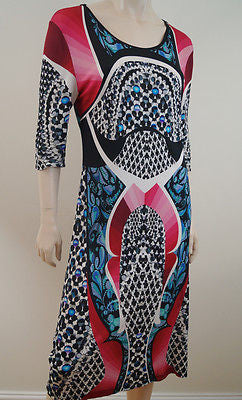 PETER PILOTTO Multi-Colour Bold Print 3/4 Sleeve Scoop Neck Summer Dress UK14