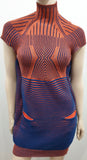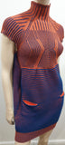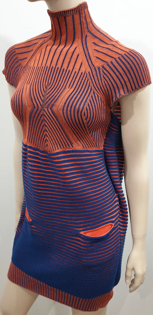 PETER PILOTTO Orange & Navy Cotton Ribbed Knitwear Mini Short Jumper Dress M