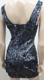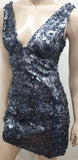 PINKO Blue Grey Sequin Embellished Plunge V Neck Sleeveless Mini Evening Dress 8
