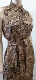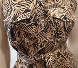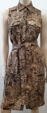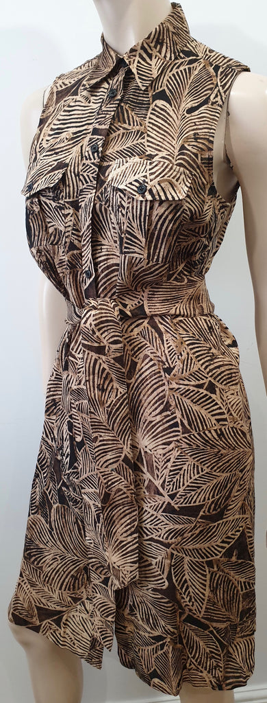 LAUREN RALPH LAUREN Brown Beige Linen Floral Print Sleeveless Shirt Dress UK10