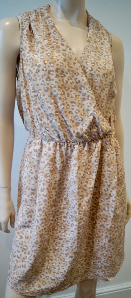 REBECCA TAYLOR Beige Silk Leopard Animal Print V Neck Sleeveless Dress 8 UK12