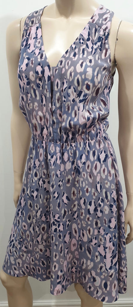 REBECCA TAYLOR Lilac Purple Silk Abstract Print Sleeveless Short Mini Dress 2 UK