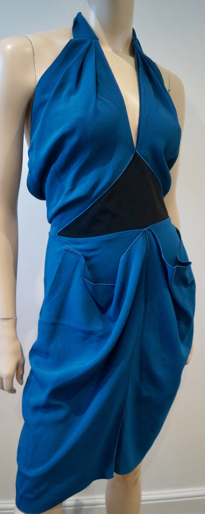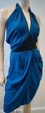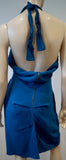 RM BY ROLAND MOURET Royal Blue Halter V Neck Sleeveless Draped Panel Dress UK12