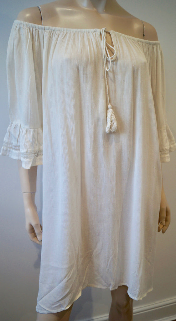 SAINT TROPEZ Winter White Off Shoulder 3/4 Sleeve Cover-Up Beach Dress S BNWT