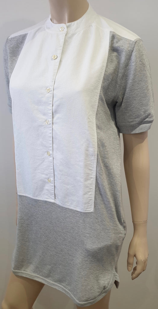 STELLA MCCARTNEY White & Grey Cotton Short Sleeve Casual Jersey Dress 42 UK12