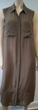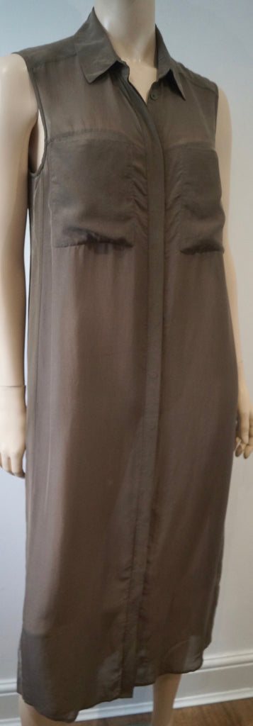 T ALEXANDER WANG Brown 100% Silk Collared Sleeveless Summer Midi Shirt Dress S