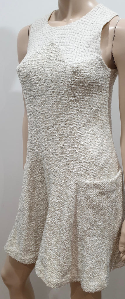 THEYSKENS THEORY Cream & Silver Textured Fabric Short Length Mini Dress 4 UK8