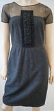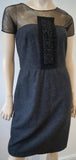 VERA WANG LAVENDER LABEL Grey Wool Silk Blend Low Black Short Sleeve Dress 8/42