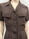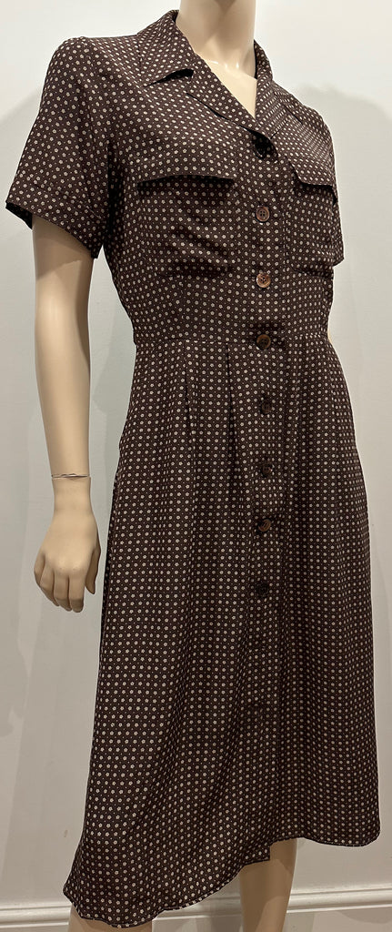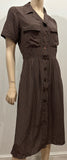 WEEKEND BY MAXMARA Brown Cream Pure Silk Floral Print Short Sleeve Shirt Dress M