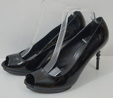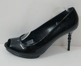 GUCCI Black Patent Leather Peep Toe High Bamboo Heel Platform Sandals EU39.5