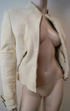 • GUCCI Cream Suede Leather Stitch Detail Sheepskin Lined Zipper Jacket 44 UK12