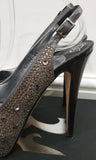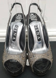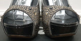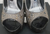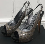 GINA Dark Grey Satin Crystal Embellished Peep Toe Platform Evening Sandals UK4.5