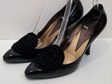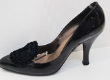 GIORGIO ARMANI Black Leather Patent Velvet Floral High Heel Court Shoes EU40 UK7