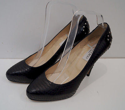 JIMMY CHOO Black Snakeskin Gold Silver Stud High Platform Court Pump Shoes 39.5