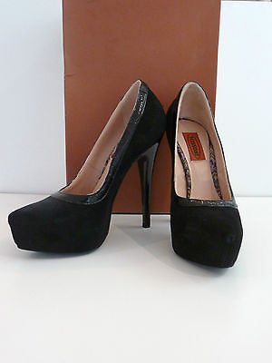 MISSONI Black Suede & Leather Patent Detail Very High Heel Platform Court Shoes