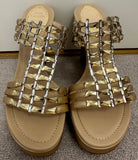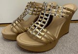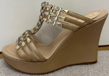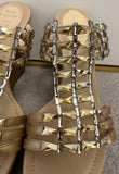 RENE CAOVILLA Beige Gold Nude Crystal Embellish Open Toe Leather Wedge Sandals EU37 UK4 - NEW!