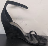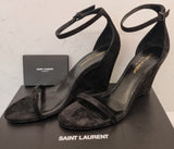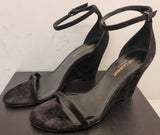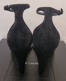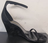 SAINT LAURENT Black Leather Suede LILA 85 Open Toe Wedge Sandals EU37.5 UK4.5