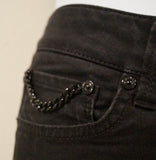 BURBERRY Black Charcoal Cotton Blend Branded Chain Detail Skinny Slim Fit Jeans