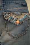 Brass, silver, blue & gold stud detailing to the rear pockets