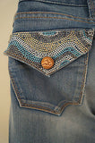 J&CO J & Company Blue Fade Detail Studded Pocket Detail Bootleg Jeans Sz:28