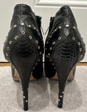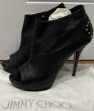 JIMMY CHOO Black Leather Peep Toe Concealed Platform Stiletto Ankle Boots 39 UK6