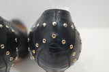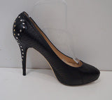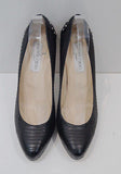 JIMMY CHOO Black Snakeskin Gold Silver Stud High Platform Court Pump Shoes 39.5