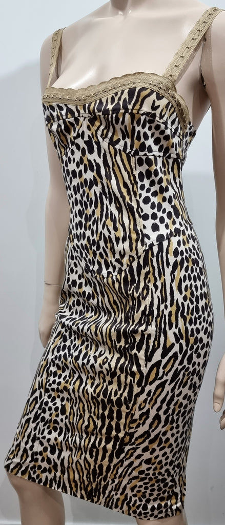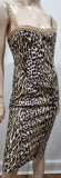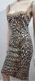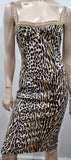 JOSEPH Cream Beige Black Leopard Print Sleeveless Fitted Bodycon Dress 40 UK12
