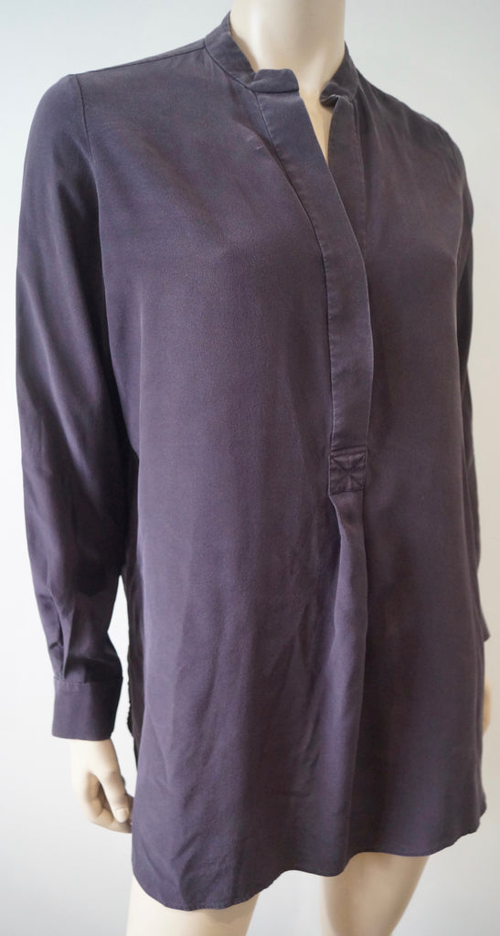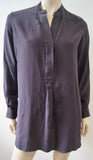 JOSEPH Deep Purple Plum Silk Collarless Long Sleeve Blouse Shirt Top 38 UK10
