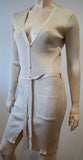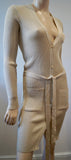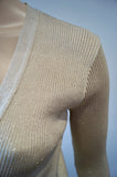 JOSEPH ESSENTIALS Beige Gold Metallic V Neck Ribbed Long Length Belted Cardigan
