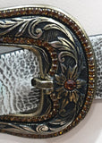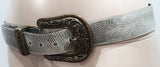 JOSEPH Matt Silver Grey Chunky Silver Tone Jewelled Buckle Leather Belt 34/85