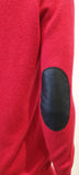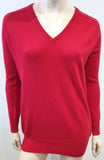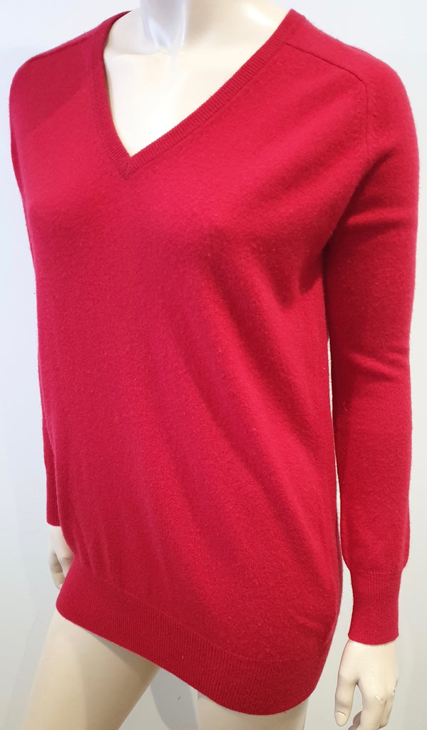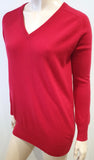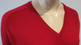 JOSEPH Red Cashmere V Neck Black Leather Elbow Patch Jumper Sweater Top S